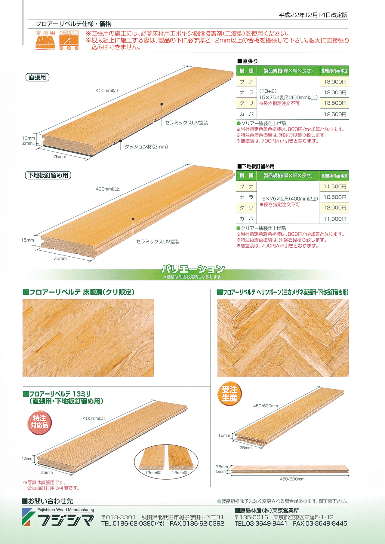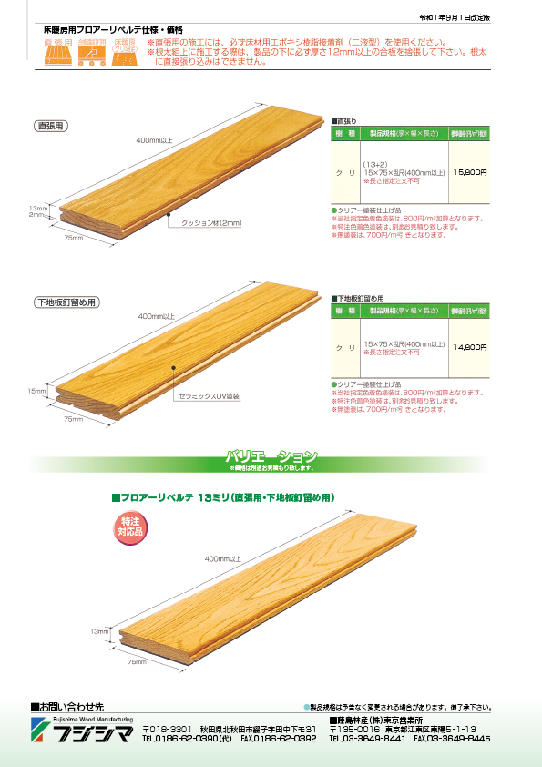 - クリ(栗)材の特性を活かして、無垢板の床暖房用を実現。